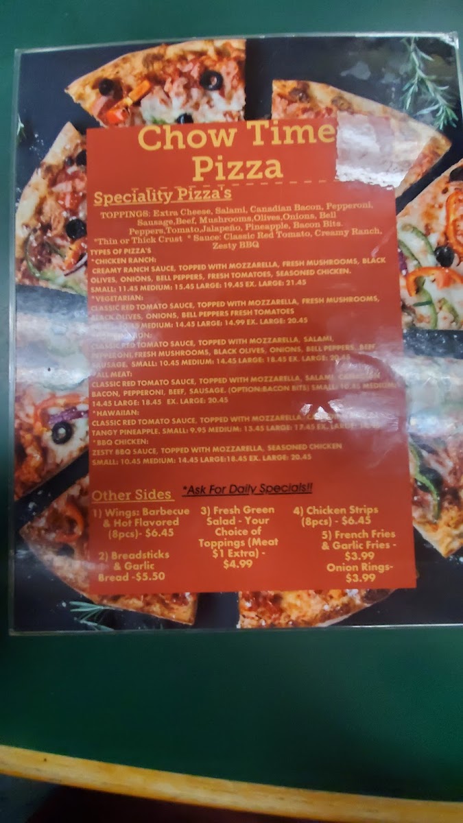 Introducing the menu at Chow Time Pizza, located in Caruthers, CA, is a delightful experience for any pizza lover. Known for its commitment to quality, Chow Time Pizza elevates the traditional pizza experience with a diverse selection of dishes. Their pizzas boast a perfect balance of rich sauce and generous cheese, garnering praise from happy customers.